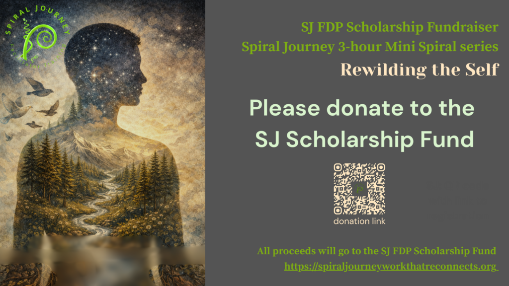 Please donate generously – we appreciate your gift- all proceeds will go to the Scholarship Fund of the Spiral Journey Facilitator Development Program please make your donation* here: scholarship fund