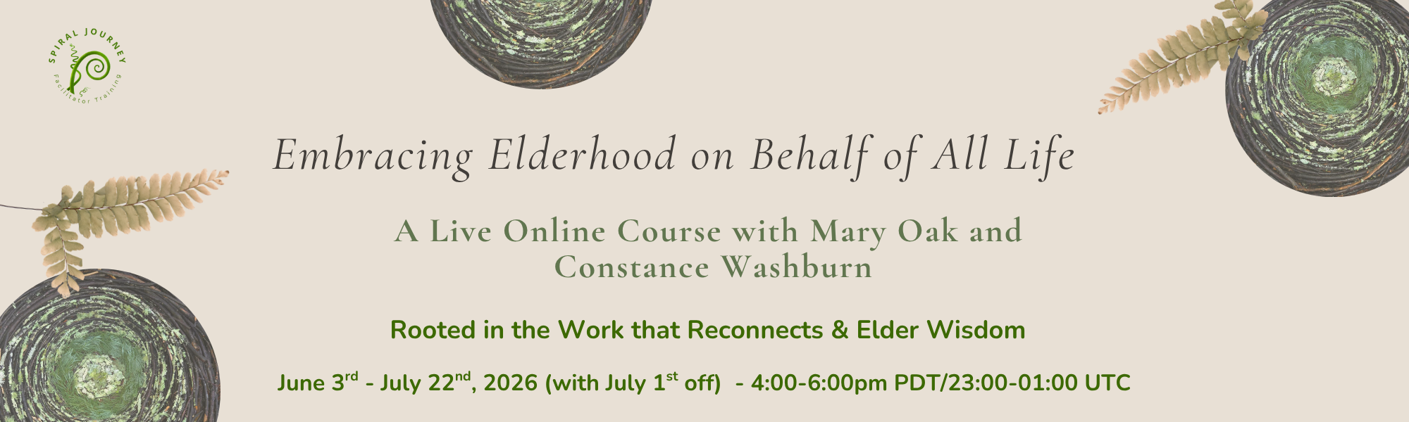 Join us in supporting one another in stepping into the role of Elder as sage, peacemaker, and activist. This interactive course builds community and nurtures conscious awareness in service to transforming our humanity, our Earth, and our future.